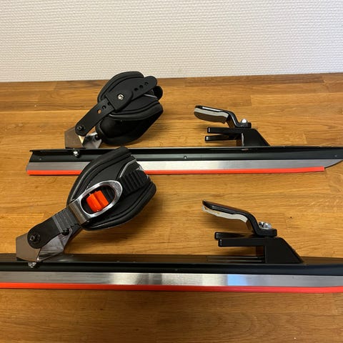 Haglöfs långfärdsskridskor. 55 cm. De är i nyskick och det kommer med en förvaringsväska samt en ispik i bra skick.