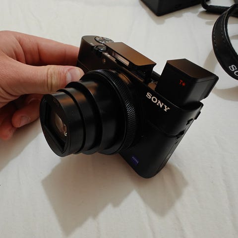 Ricoh GR II Kompaktkamera inklusive originalförpackning, batteri, laddare, väska och bruksanvisning.