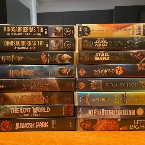 Jag säljer ett samling tecknade och animerade barnfilmer i VHS-format. Med bland annat titlar från Beatrix Potter, Landet från Längesedan och Scooby Doo.