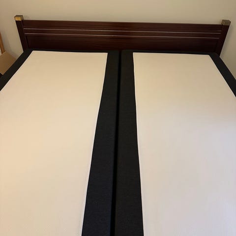 2 sängar utan bäddmadrasser. Resårbotten och träben 90x200. Skårer 41 cm hög är fast, Snarum 44 cm hög är medium/fast. Köpta 2023 och obetydligt använda. Hämtas på plats, ta med bärhjälp. 1000 kr/st