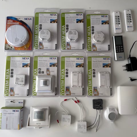 Säljer ett komplett paket med 23 st Fibaro Z-Wave-enheter för smart hem.