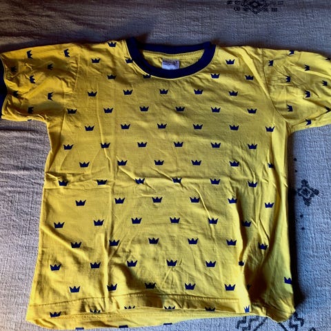 Linne M.O.O.S.E Sweden AB, vintage med gula kronor på blå botten M