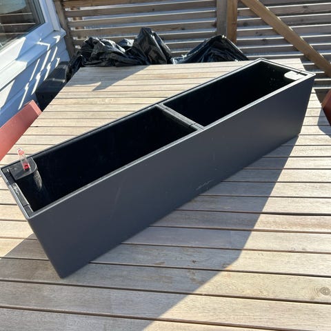 Stilren balkonglåda med naturstenslook – perfekt för blommor, örter eller säsongsplanteringar. Självvattnande system som kräver minimal skötsel. Passar både inom- och utomhus.