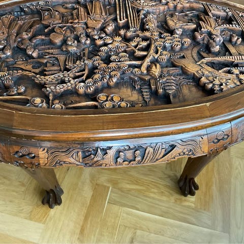 bordet är tillverkat av järn Bordet är elegant svängda järnben med en knut i mitten, allt är handgjorda kolla bilderna