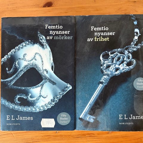 EL James Fifty Shades Trilogy bokset bestående av tre böcker: Fifty Shades of Grey, Fifty Shades Darker, och Fifty Shades Freed. Böckerna är på engelska, i pocketformat och säljes som ett samlingspaket.