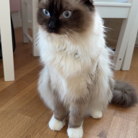 Leo är född 16/1/2025 och är 1 år gammal. Han är full Ragdoll, frisk, stark och mycket väl omhändertagen.