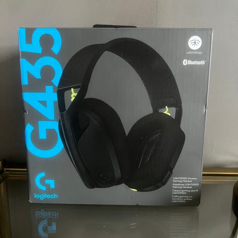 Logitech G435 trådlöst gamingheadset i svart färg. Headsetet har en justerbar huvudbygel med mjuka öronkuddar för komfort under användning. Passar för gaming och annan ljudanvändning med trådlös anslutning.,Funkar mycket bra