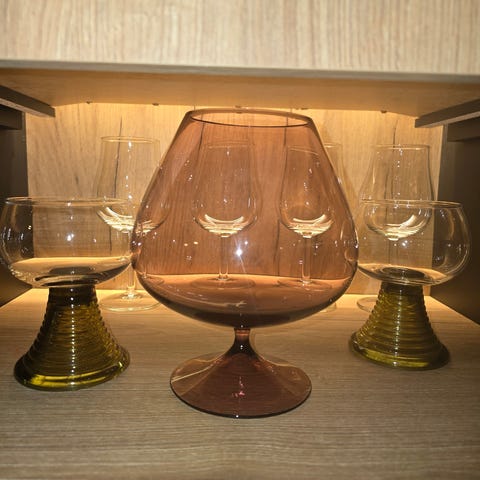 Två smäckra och vackra selterglas i fint skick och med en underbar djupblå färg. Hela och fina vintage glas. Glasen är inte helt likadana i formen men passar bra ihop. Tillverkare och modeller är för mig okänd. För mått se bilder och hör av dig om du har frågor.