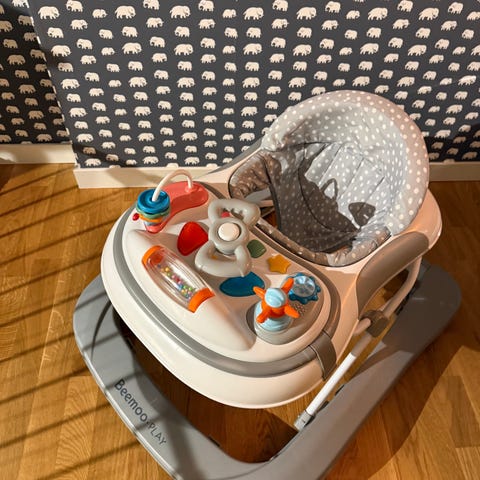 Beemoo PLAY Explore 3-i-1 lära-gå-stol är utvecklad för att främja barnets motorik, balans och styrka, men också för att vara underhållande under tiden. Här kombineras praktiska funktioner med lekfull design: en speldosa som spelar olika ljud, svängbara framhjul och ett bekvämt, höjdjusterbart säte. En perfekt följeslagare för nyfikna små som är redo att utforska!