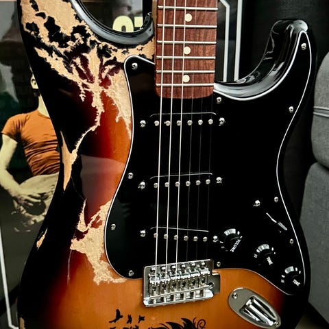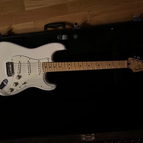 Genuin Fender Stratocaster Sunburst från 2001. Lämplig för både nybörjare och erfarna spelare.