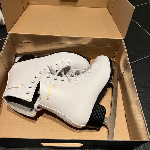 Graf Montana Gold skridskor för barn i storlek 36. Skridskorna är vita med snörning och har en klassisk design för konståkning. Passar för olika typer av skridskoåkning.
