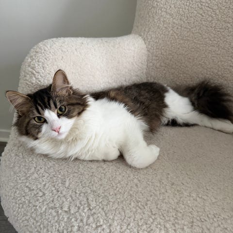 Vi har blivit mellan händer till Doris då ägarna inte längre var benägna att ta hand om henne. Hon är 6 år, född och uppvuxen som ute katt, vi tror hon gärna kommer till några som kanske inte har barn, då vi tror att hon gillar att ha det lugnt runtomkring. Hon gillar att komma och gå som hon vill.