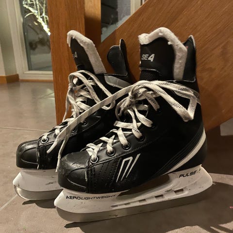 Pro Flyers Supreme ishockeyskridskor i storlek 33 för barn. Skorna är svarta med vita snören och är avsedda för ishockey. De är lite nötta i tyget längst fram , annars ok skick.