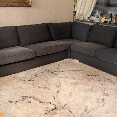 Två soffor och ett runt bord med två antika stolar och två mattor och en exklusiv madrass av minnesskum bortskänkes.
