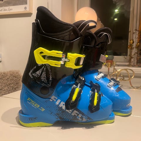 Firefly slalompjäxor junior. Innermått 26.0, ca stl 39-40. Insidan är hel och i fint skick. Utsidan är synligt använd men hel och i bra skick. Finns i Högdalen i Stockholm om ni vill komma och prova dom.