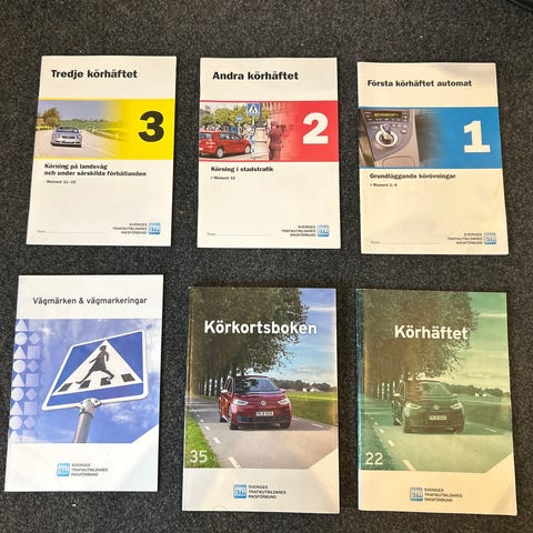 Säljer körkortsboken (upplaga 35) + körhäftena 1,2,3 + vägmärken. Mycket bra skick, som ny.