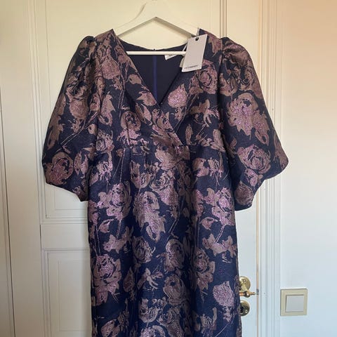 Säljer en helt oanvänd elegant klänning från Maya Deluxe i färgen Taupe Blush. Klänningen har en vacker paljetterad överdel med lång ärm och en diskret, genomskinlig mesh vid halsringningen. Midjan är markerad och kjolen är i mjuk tyll med lager-på-lager som faller fint och ger ett exklusivt intryck.
