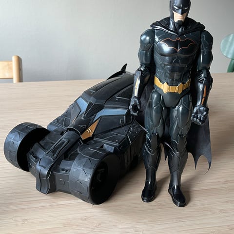 Batman Batmobil barnleksak. Inkluderar delar för montering enligt medföljande instruktioner. Lämplig för barn och samlare.