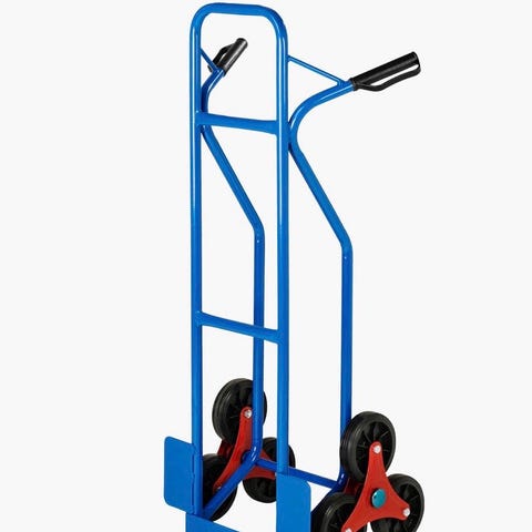 Säkerthetsanordning för fordon med blå metallram och fästanordningar för säten. Anordningen är monterad mellan säten och golv för att säkra lasten eller utrustning under transport. Materialet är huvudsakligen metall med blå färg. Produkten är avsedd för användning i fordon för att öka säkerheten vid transport.