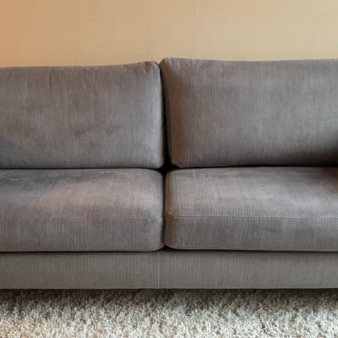 Mycket bekväm/mjuk med bra sittdjup och hög komfort. Avtagbara fodral, metallben.