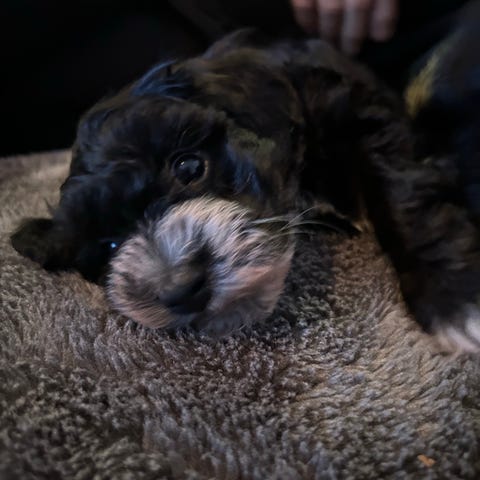Vi har nu en liten tik kvar Hon är en allergivänlig blandras, mycket mångsidig och passar utmärkt som första hund eller i en barnfamilj. En hund som gärna hänger med på det mesta.