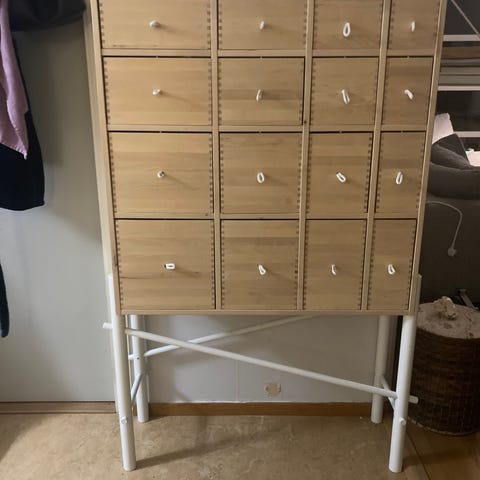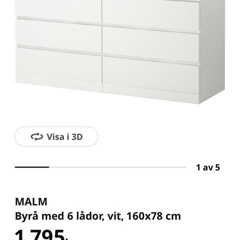 Vit byrå med 8 lådor. Knappt använt, som ny. Inga skador. Säljer på grund av flytt. Nytt kostar 3.495-sek.