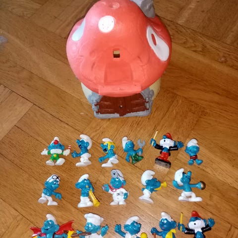 Säljer nu mina smurfar. Är ett gäck på ungefär 50 gubbar plus en del grejer till så som smurfhus mm.