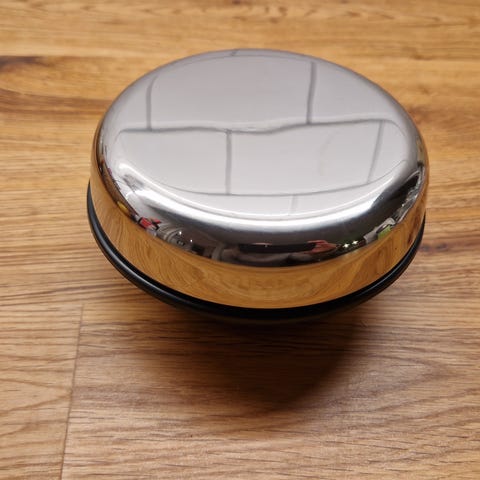 Fartygsventil har en diameter på cirka 38 cm och är utrustad med gångjärn och låsanordningar för montering och säkerhet.