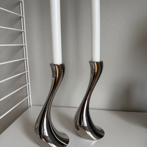 Georg Jensen Cobra ljusstake i metall med en modern och böjd design. Passar för användning med ljus och kan användas som dekorativ belysning i hemmet. Köpte alla 3 för 6månader sedan och har sedan dess inte haft en plats för alla, säljer nu den mellersta! 950kr!