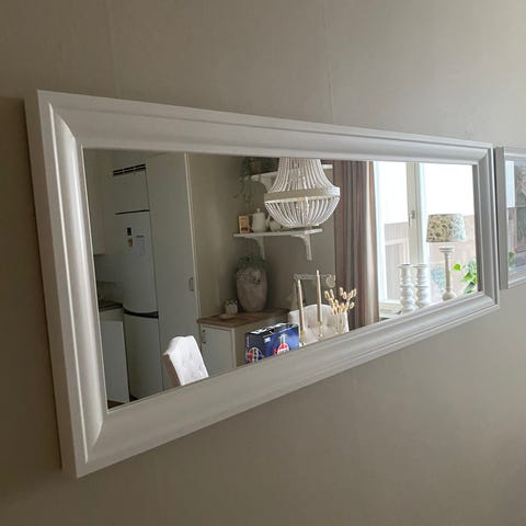 Vita speglar med ”guld”dekor. Den stora, och mellan är exakt samma, den mindre har lite svagare dekor.