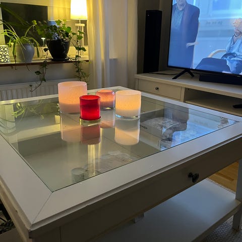 Vardagsrum/soffbord i härdat glas.