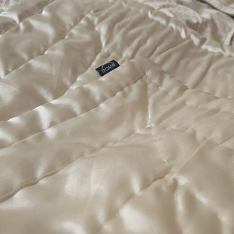 Lila sammetsöverkast från Linum för dubbelsäng