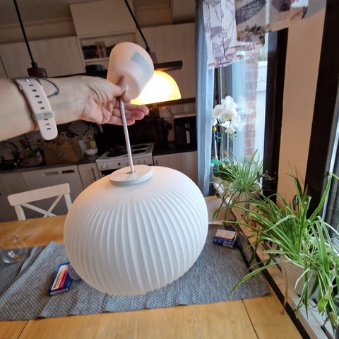Som vi inte behhöver något mer så hoppas den får ett nytt hem som verjligen behöver en unik lampa