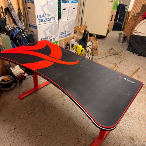 Hej ska nu sälja mitt skrivbord då ja skaffade annat, är en liten skada där armen till skärmarna har suttit men annars är skrivbord jätte fint