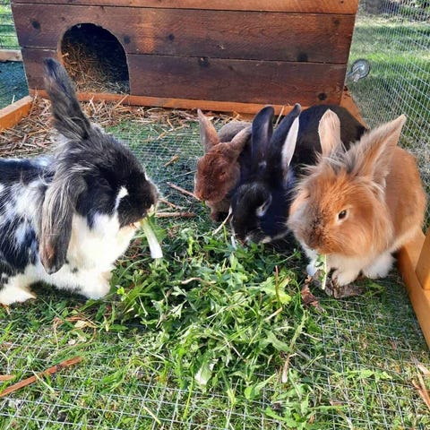 Här finns friska och trevliga blandraskaniner som passar dig som är intresserad av självhushåll eller dig som söker en kaninkompis i lite större storlek. Blandningar av tex belgisk jätte, new zeeland red och blå wiener. De väger mellan 4-5 kg.