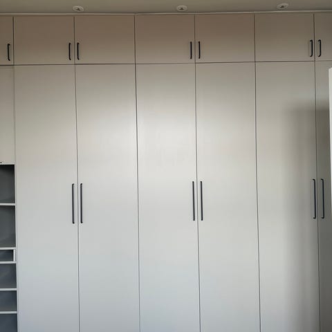 Observera att leverantören under åren har bytt material på hyllplanen, vilket innebär att en av garderoberna skiljer sig något i material. Skillnaden är dock inte synlig och påverkar varken funktion eller utseende i helhet.