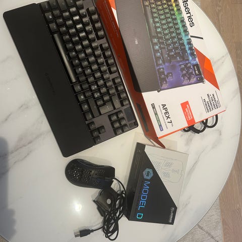 Steelseries Apex 7 tangentbord som inte kommee till användning. 100% tangentbord med Oled skärm i hörnet. En tangent har ändrat färg men går säkert att prgärda har inte kollat.