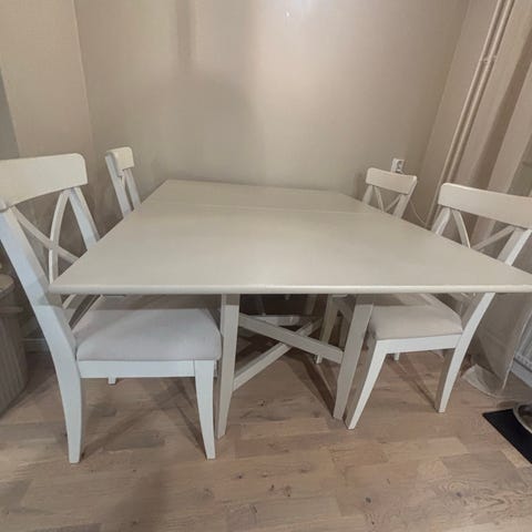 Köksbord i laminat från IKEA i fint använt skick! Stolar i plast medföljer.