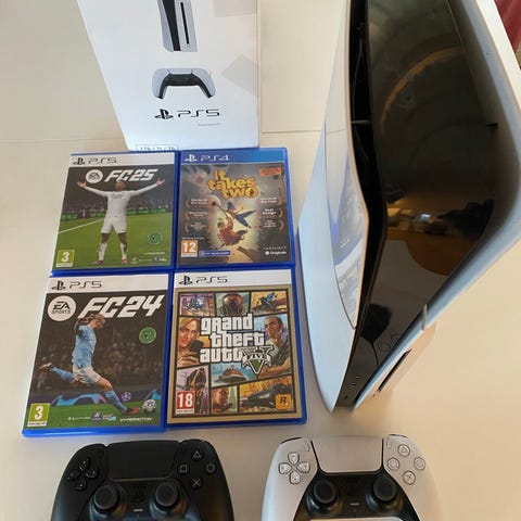 Säljer en PlayStation 5 med skivläsare, i nästan nyskick och mycket sparsamt använd.