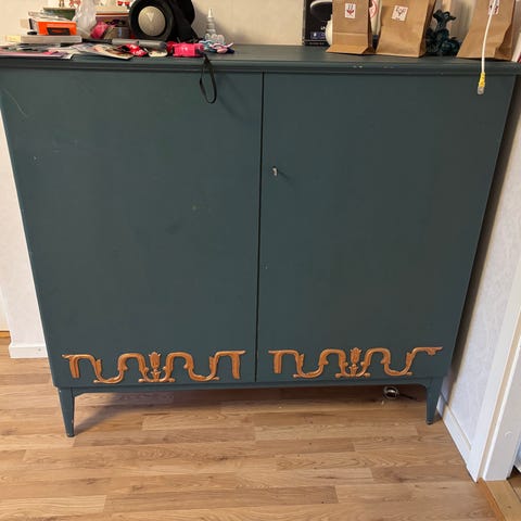 Skåp i vitt med tre dörrar. Möbeln e drygt 100 år gammal och är tillverkad i trä