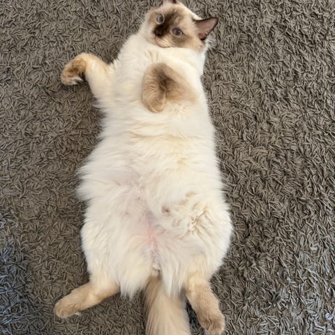Han är född 24/2/2024, okastrerad hane. En otroligt lugn, social och gosig katt med den typiska ragdoll-personligheten, han tycker om närhet, är snäll i hantering och trivs med människor.