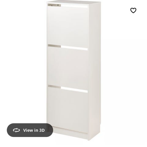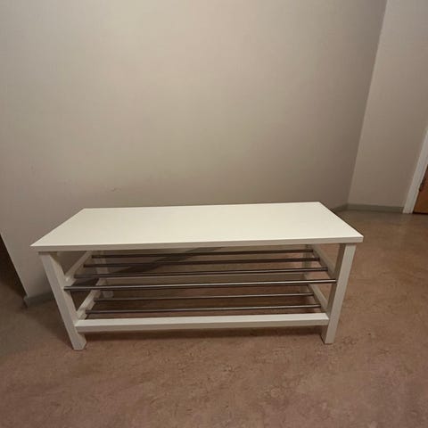IKEA Skoförvaring i vitt utförande med flera fack för organisering av skor. Möbeln är designad för att stå på golvet och har en enkel och funktionell design. Kommer utgå snart i ikeas sortiment.