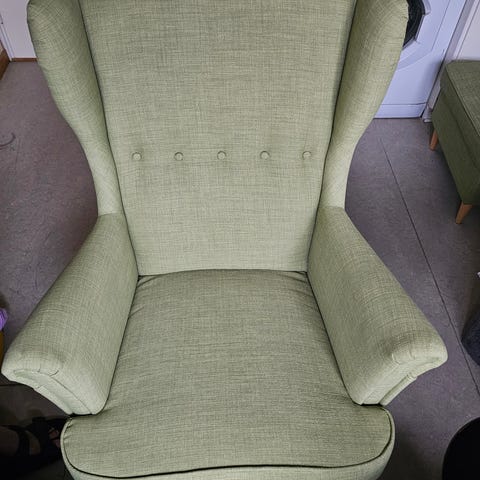 Strandmon fåtölj från IKEA i skiftebo gul färg i bra skick( som ny ) sparsamt använt .