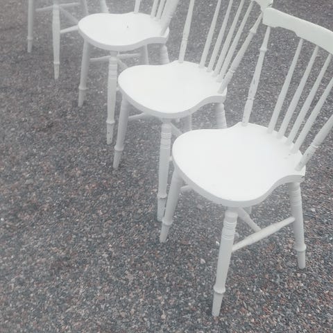 Söker stapelbara trästolar i stil med de på bilden. Ute efter större parti men allt är av intresse. Utgår från Dalarna men kan hämta på annan ort under rätt förutsättningar.