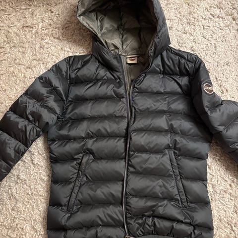 Svart/brun jacka med luva från Colmar. Jackan har en silverfärgad dragkedja och en logotyp på vänster ärm. Insidan av jackan är ljusbeige. Funkar som skidjacka. Den är i verkligen kanonskick och har inga tecken på användning - MEN dragkedjan behöver fixas till vilket kostar ca 50 kr hos en skräddare.