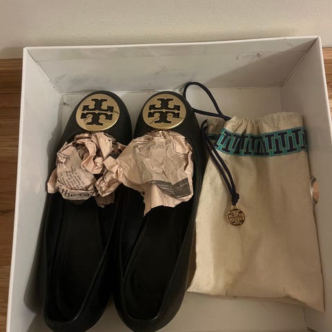 Säljer fina Tory burch ballerina svarta skor i storlek 40.5