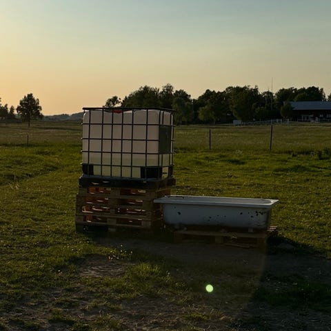 2 st tankar på 1000 l använda till regnvatten