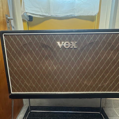 Voxlåda som varit med om en del. Sitter en engelsktillverkad Celestion Vintage 30 på 8 Ohm i den. Den sitter med tre fästskruv eftersom insatsen till den fjärde gått sönder.
