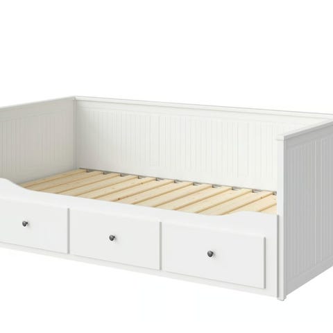 IKEA dagbädd Hemnes med tre lådor för förvaring under sängen.