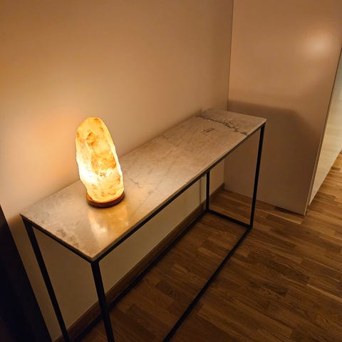 Avlastningsbord med glasskiva i marmor. Ben med guldfot. Jättefint skick